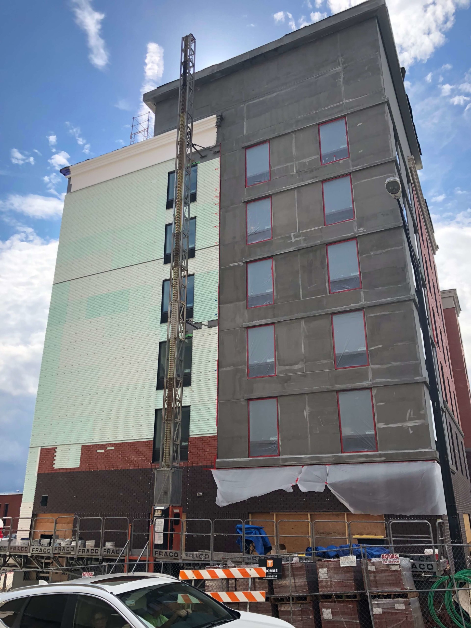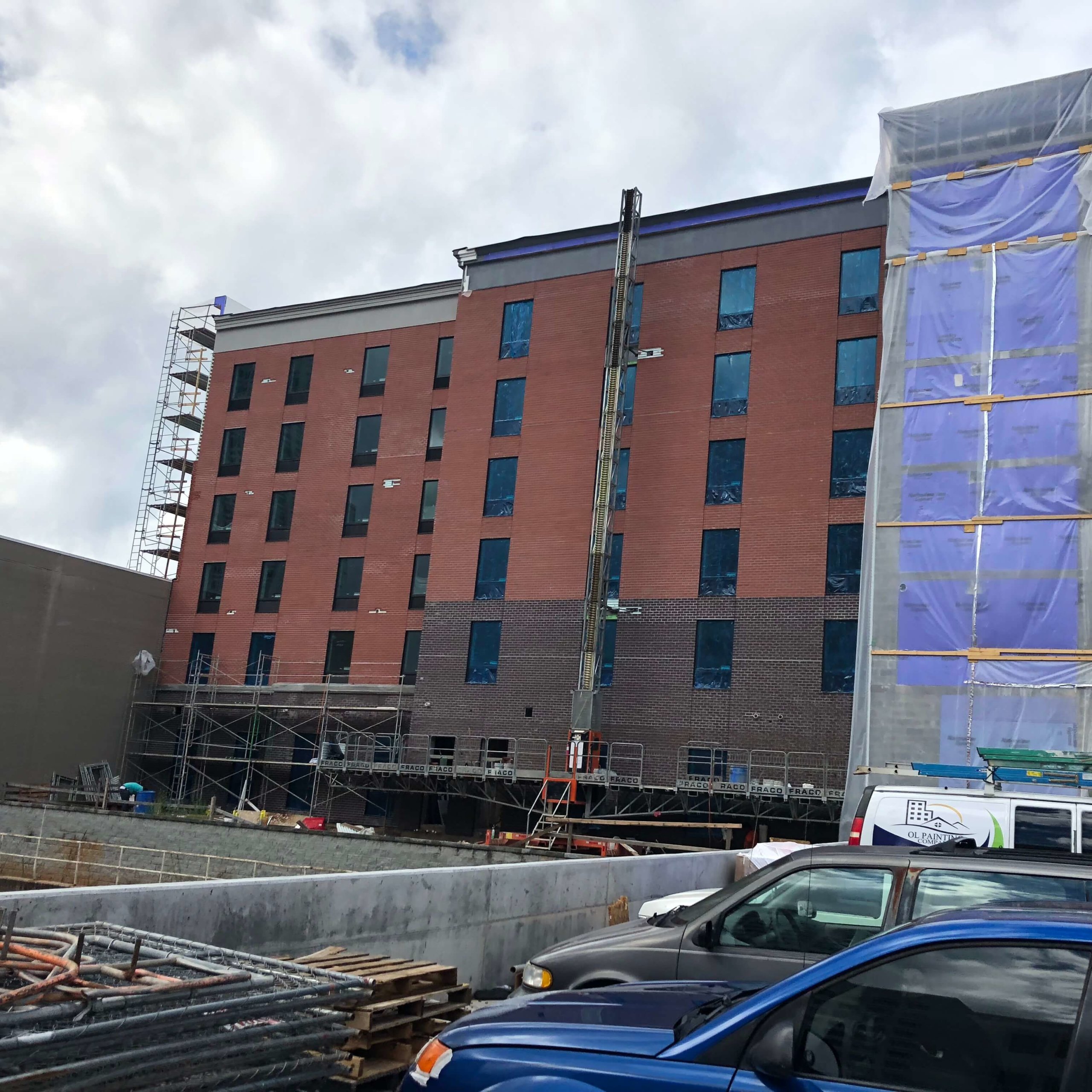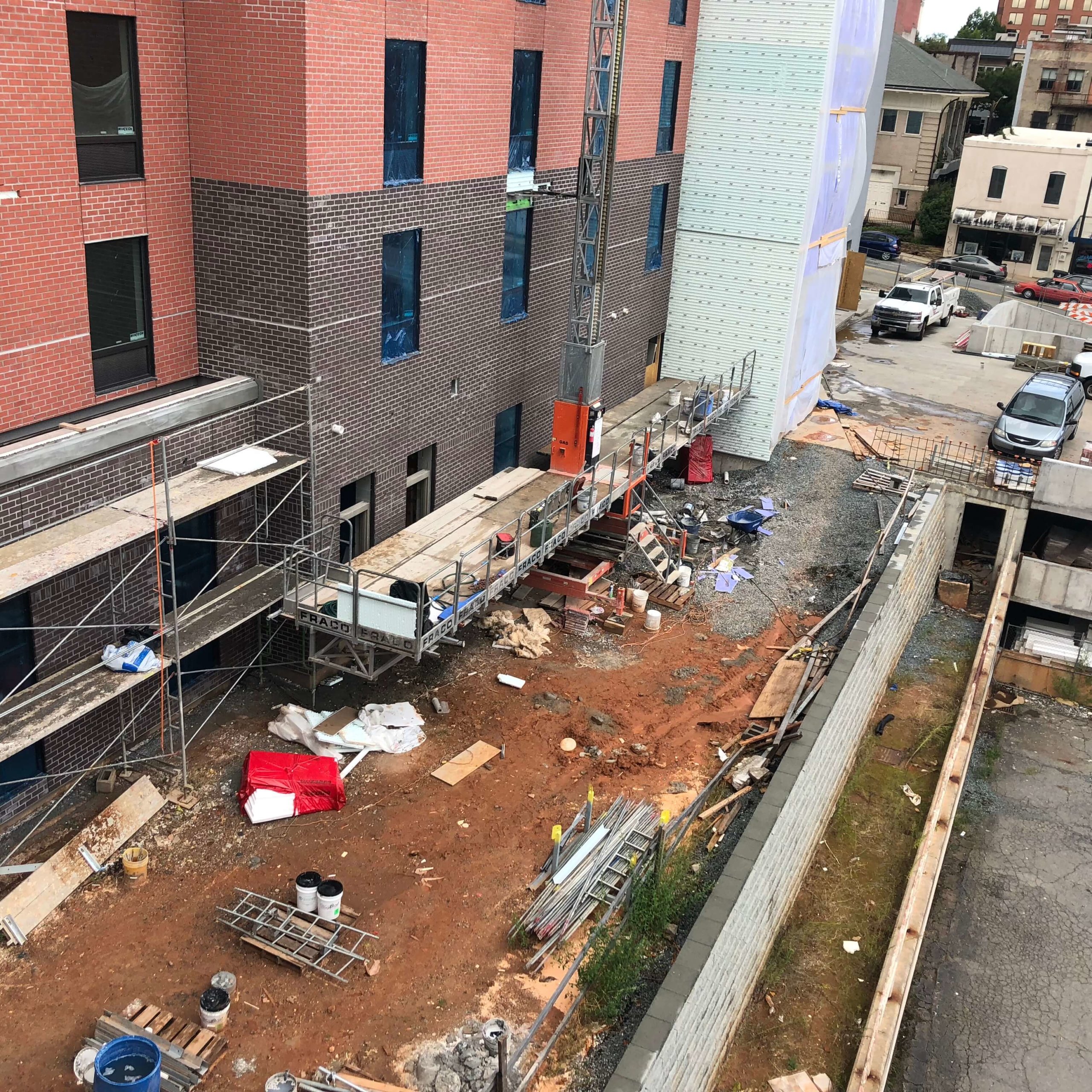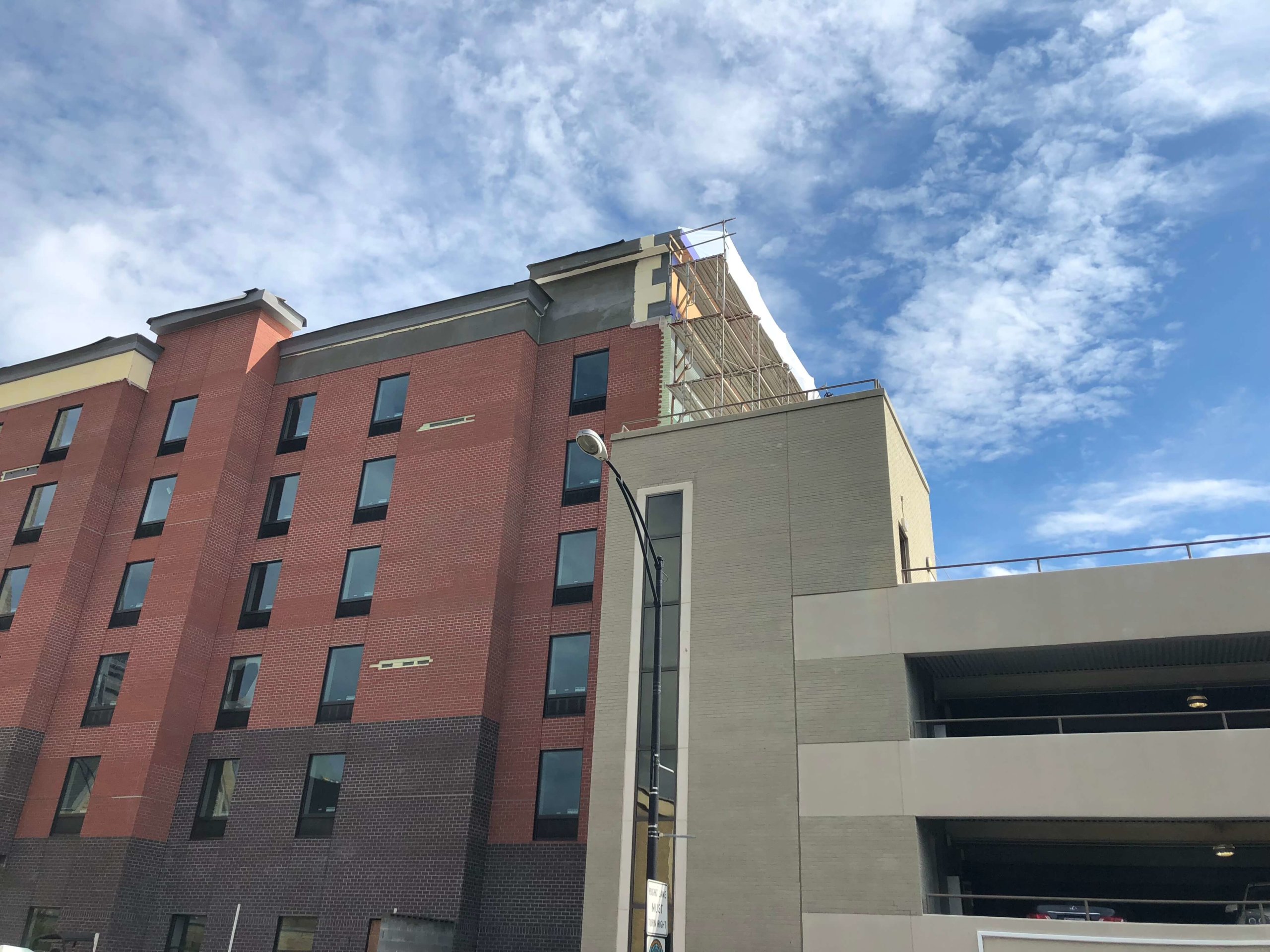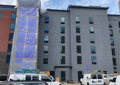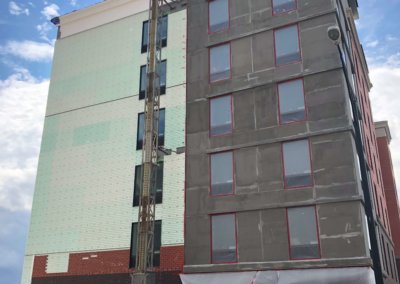 Hampton Inn & Suites Winston-Salem DowntownNew Hotel Construction- TPO Roofing, Metal Cap, Waterproofing, EIFS Installation, Endura-max Brick System.